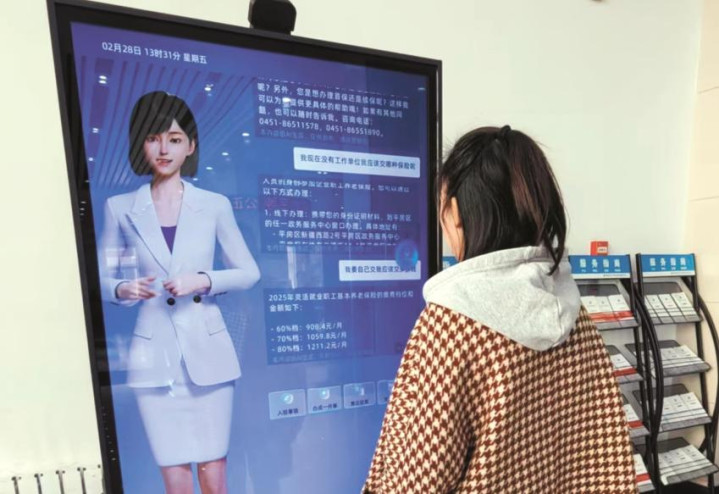 记者在平房区政务服务中心看到,市民张先生正通过“平平”咨询医保业务办理等问题。“平平”细化问题类别,通过瞳孔微缩、头部微倾等拟人化动作,配合语音给予解说回应。“感觉像和真人对话,它的口型和说的内容都能对应上,还能对我的问题进行细致询问和解答,真是太厉害了。”张先生感叹。